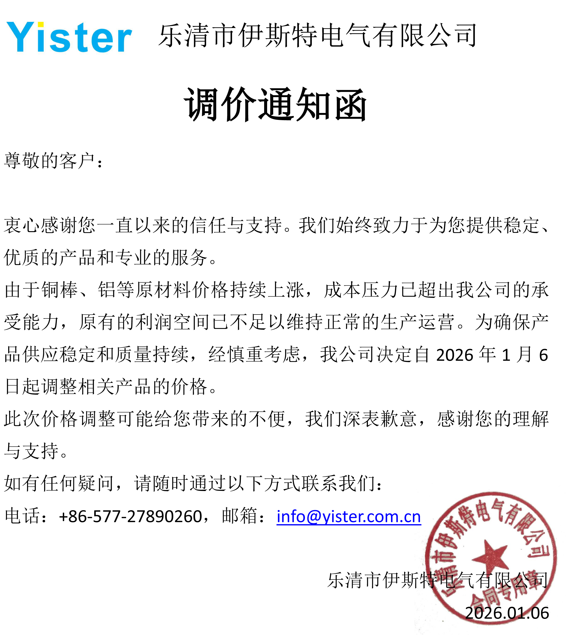 調價通知函