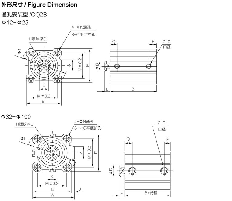 CQ2B系列薄型氣缸