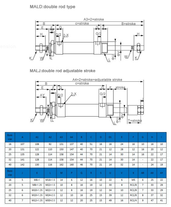 .MAL mini cylinder is adapt the bearing with oil, lubrication is not required for the piston rod.