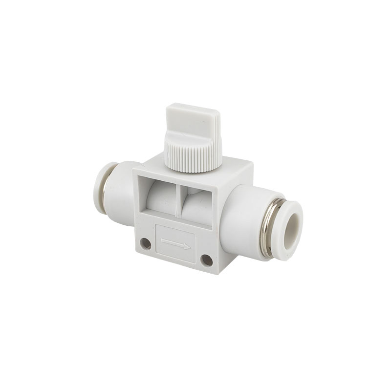 .HVFF hand valve fitting is used for controlling on and off air pressure of pneumatic devices. This joints fittins has no function of regulating air flow.