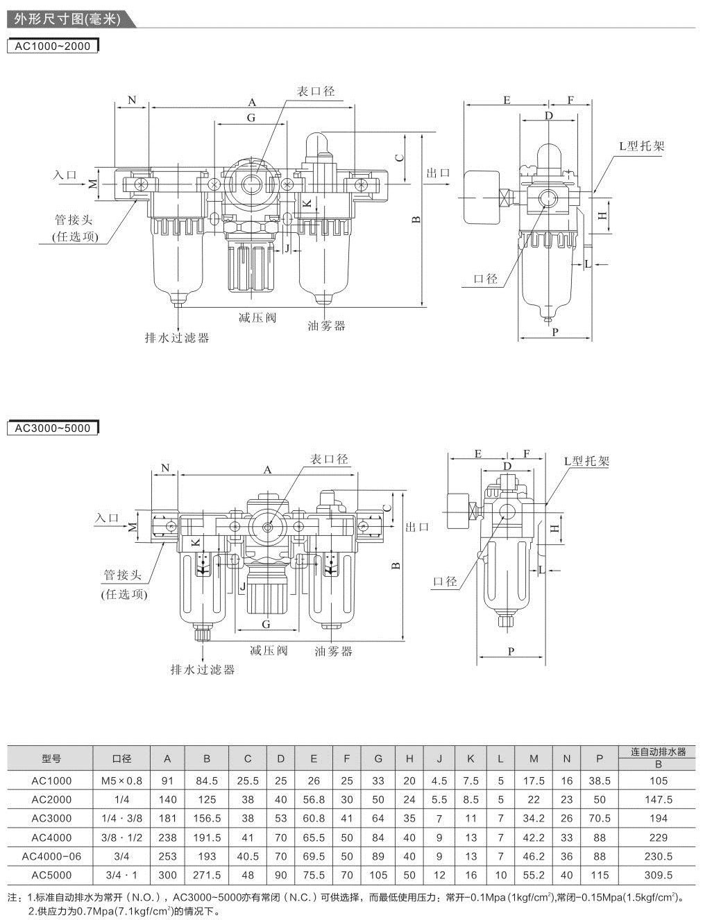 SMC型三聯件油水分離器氣源處理器AC2000-02 AC3000-03 AC4000-04/06 AC5000-10